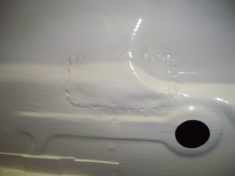 zu erst hab ich mal das alte Blech vom Innenradlauf hinterm Stoßdämpfer abgebohrt... na ja sieht net so dolle aus, aber krieg ich hin: