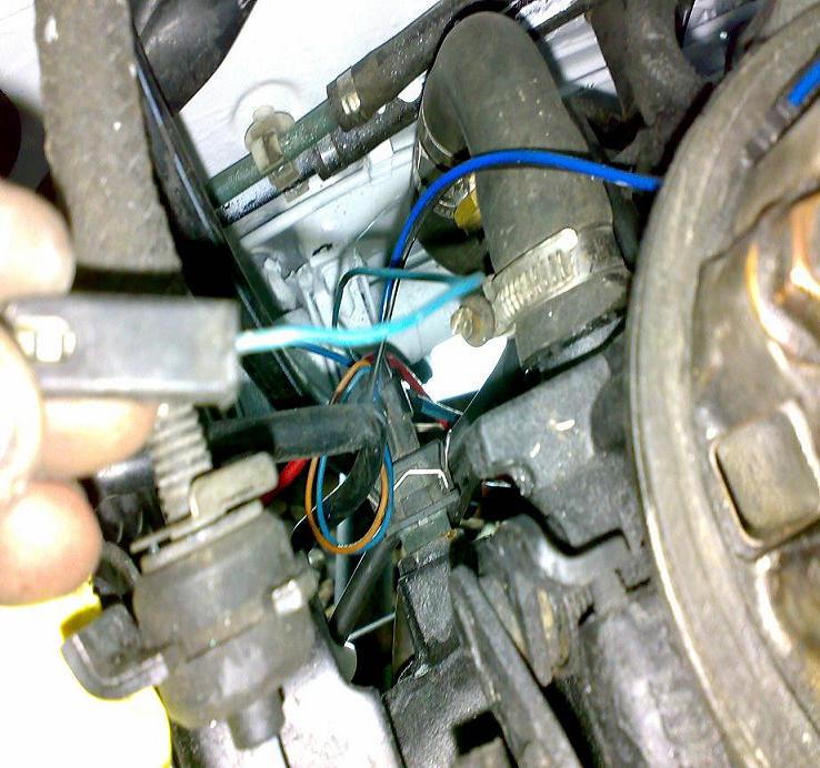 das blaue kabel kommt auf den kleinen geber auf der ansaugbrücke rechts in der nähe des zahnriemens...