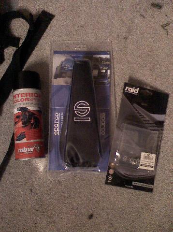 Nabend, war heute mit meinem 4ten Bein bei D&W und habe Mentor das Lenkrad verkauft was auf den ersten Bildern zu sehen war, natürlich musste ich auch bei D&W rein und erstmal gucken, hab mir dann für mein Lenkrad neue schrauben von raid gegönnt und eine spraydose mit schwarzen lack für amaturen etc .. wollte es mal ausprobieren da ich die Tage mein ganzes amaturenbrett neu machen werde, Also die mittelkonsole die noch in einem Mausgrau war musste dran glauben. Waren dann nätürlich auch noch bei Sandtler wo ich mir ne Schalthebelmanschette von Sparco gekauft habe ... schalthebel etc folgt noch ... hab jetzt die genaue Vorstellung !!!