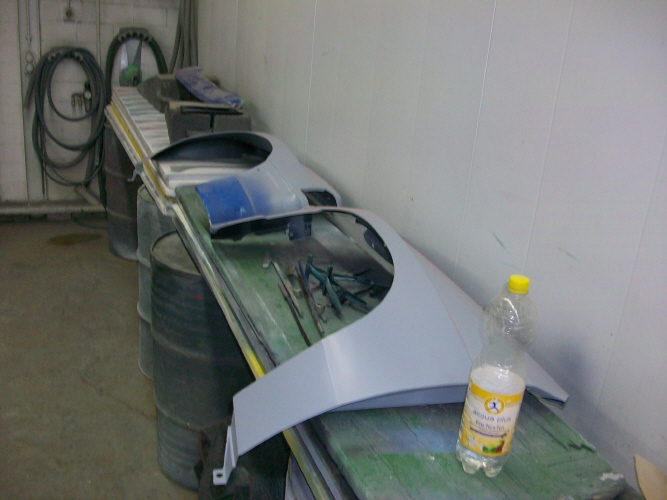 Also zuerst mal für schöne Radlaufabschlüsse die Stossstangen schön eingepasst mit Grill etc und dann gleich mal alle Aussenteile demontiert und schon mal dem Lackierer gebracht zum vorbereiten...