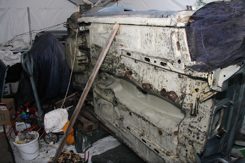 Momentan bin ich noch in den hinteren Radkästen zu Gange, erst dann wird dem Blech der Prozess gemacht. Und wie solls anders sein hab ich noch ein Loch gefunden...