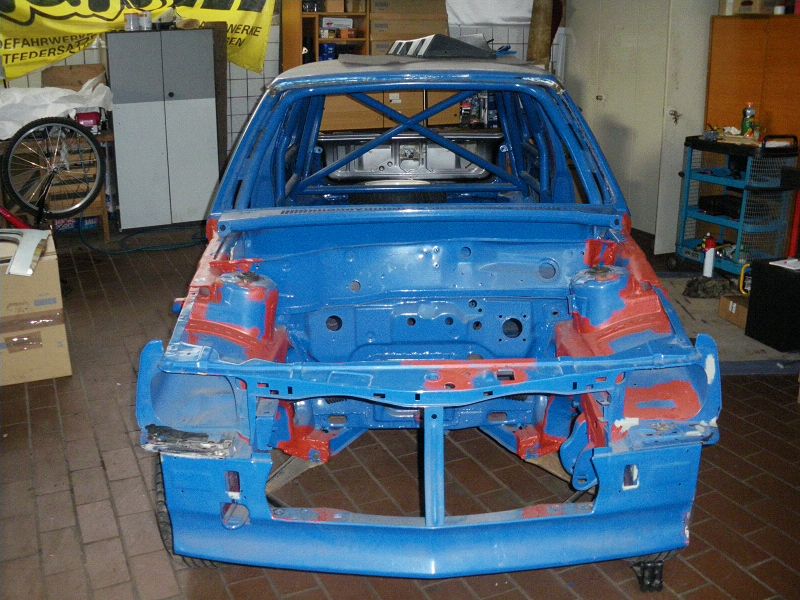 Leergeräumt ist er schon. Zelle ist auch schon drin. Teilweise sieht es nicht so ganz so doll aus, da muss ich an der einen oder anderen Stelle nochmal drüber gehen. Verstärkungsbleche sind auch schon drin.