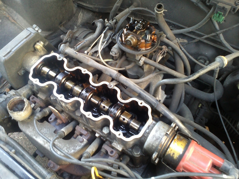 Nachdem dann der Innenraum wieder halbwegs akzeptabel aussah und bis auf ein paar Beulen rein äußerlich auch wieder alles ok war, ging es an den Motor. Die Ventildeckeldichtung war undicht und er nahm schlecht Gas an (u.A. waren zwei Schläuche des Luftfilters ab :roll: ). Da ich eh schonmal am Motor zu Gange war, direkt die Zündung eingestellt und siehe da, nun macht's deutlich mehr Spaß als vorher! :)