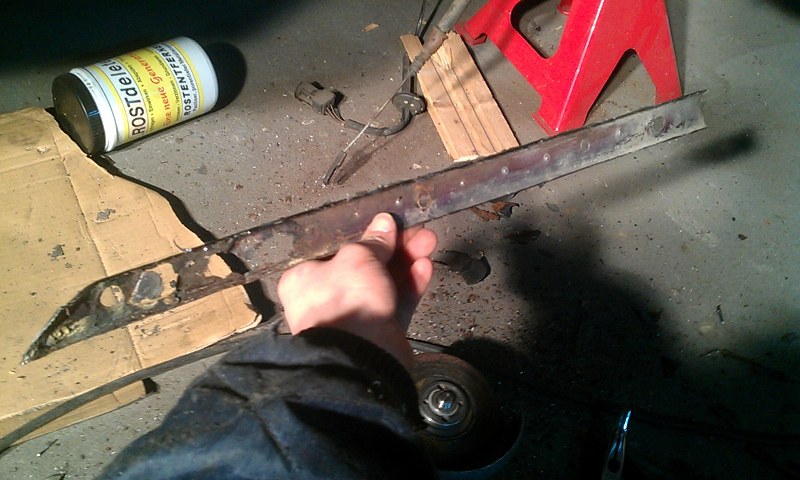 Radlauf auf der Beifahrerseite hab ich innen sowie außen ersetzt, und den Längsträger Fahrerseite repariert, und ein neues Batterieblech eingesetzt.