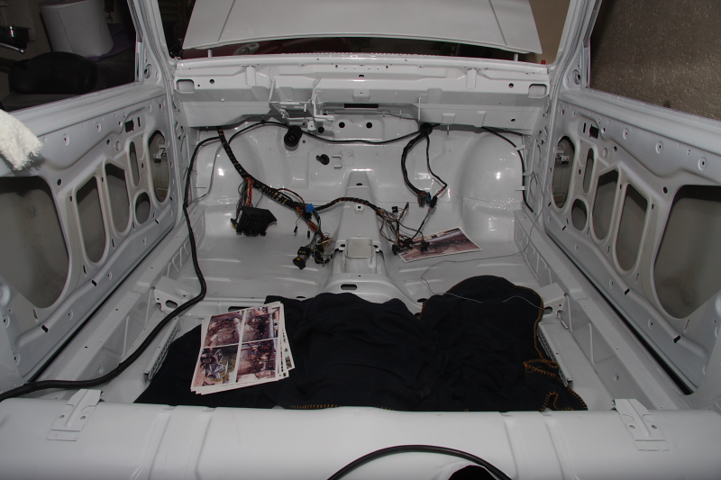 Den neuen Kabelbaum heute mal soweit hergerichtet und verlegt. Jetzt muss ich mich nur noch erinnern, wo ich die Laschen zum festmachen hin hab^^. Trotz dass ich da recht ordendlich alles sortiert hatte, sind doch die einen oder anderen Kleinteile verschwunden... U.A. auch die Schrauben von den Heckleuchten...