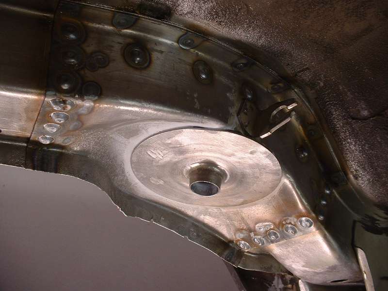 Die schönsten Schweißarbeiten hab ich mir ja zum Schluss aufgehoben. Gestern hab ich dem Längsträger hinten links endlich das aufbereitete Vorface-Spenderteil incl. Federteller (Danke Jens! ;) ) eingepflanzt. Für mich ein weiterer kleiner Sieg. :top: Nach dem verschleifen sahs dann fast so aus als wärs nie anders gewesen.