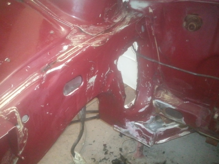 ...und wieder was geschafft! Motorraum grob durchgeschliffen. Morgen fang ich mit den Blecharbeiten an.