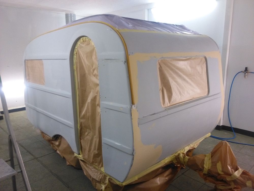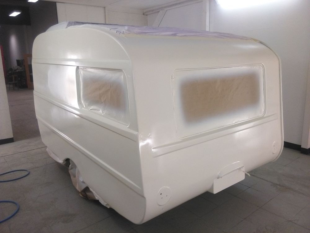 Zweifarbig lackiert in seidenmatt, weil die GFK Flächen ziemlich verworfen sind, somit fällt das nicht ganz so sehr auf.