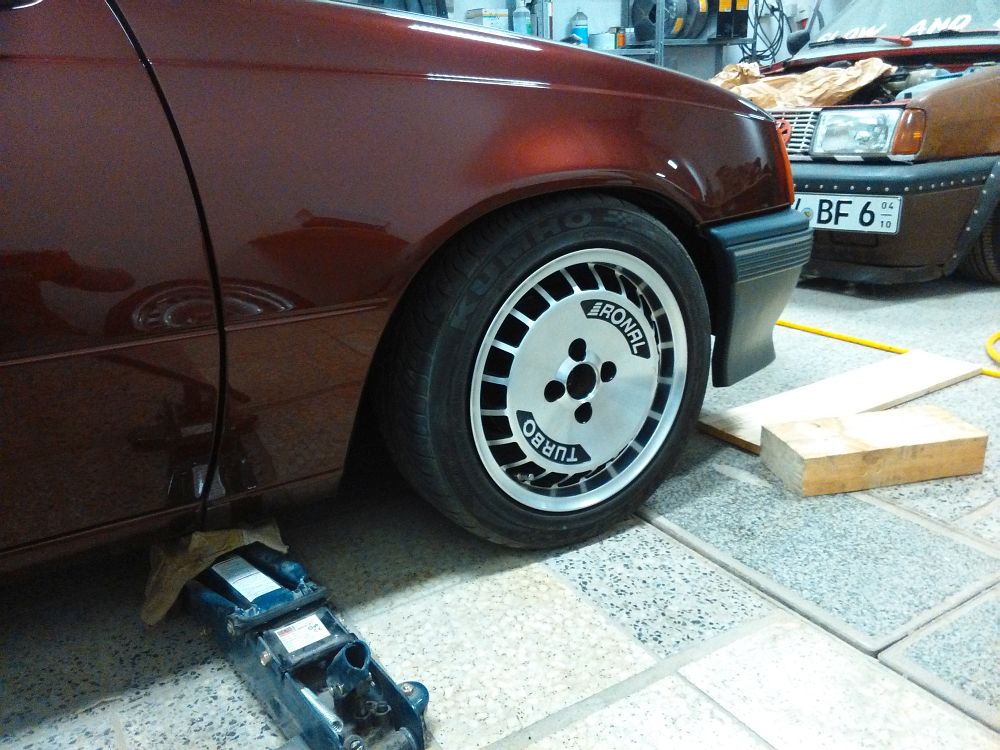 Dann gibt es 2016 neue Stahlfelgen in gleicher Dimension nur seidenmatt schwarz lackiert und mit 165/40/16 statt 165/50/16. Spaßenshalber hab ich mal die Turbo´s vom Kollege drauf gesteckt, ist aber nicht so meins.