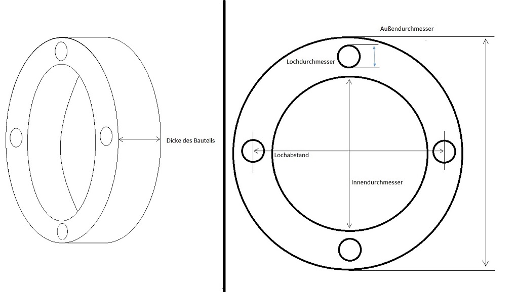Nur den Ring aus Polyamid, Gewindehülsen und von innen mit M8 Schrauben befestigt.