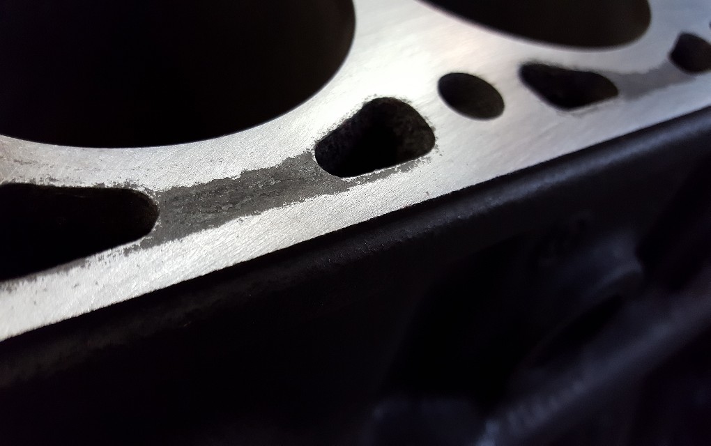 Habe die alte Kopfdichtung vom Block entfernt und die ganze Fläche etwas gesäubert/geschliffen. an zwei Stellen (siehe Anhang) ist die Fläche nicht mehr eben. Ist zwischen zwei Kühlwasseröffnungen. Muss der Block zum Motorenbauer und geplant werden?