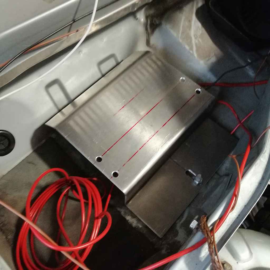 Daher werde ich es dahin setzen, wo Original die Batterie sitzt und die Baterrie kommt in die Reserveradmulde. Ich möchte einfach die Bordwand zwischen Motorraum und Innenraum nicht aufschneiden. Ich meine nämlich, da müsste das Steuergerät dann hin, unter das Handschufach bzw unter die Batterie.