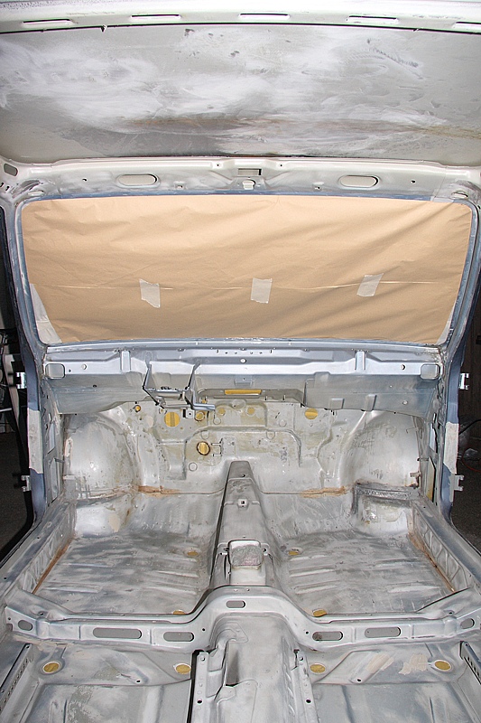 (edit: Im Nachhinein hat die Aktion keinen Sinn gemacht, da außen eh noch geschliffen, grundiert, gefüllert und lackiert werden musste und von daher das bisschen Lacknebel nix ausgemacht hätte)