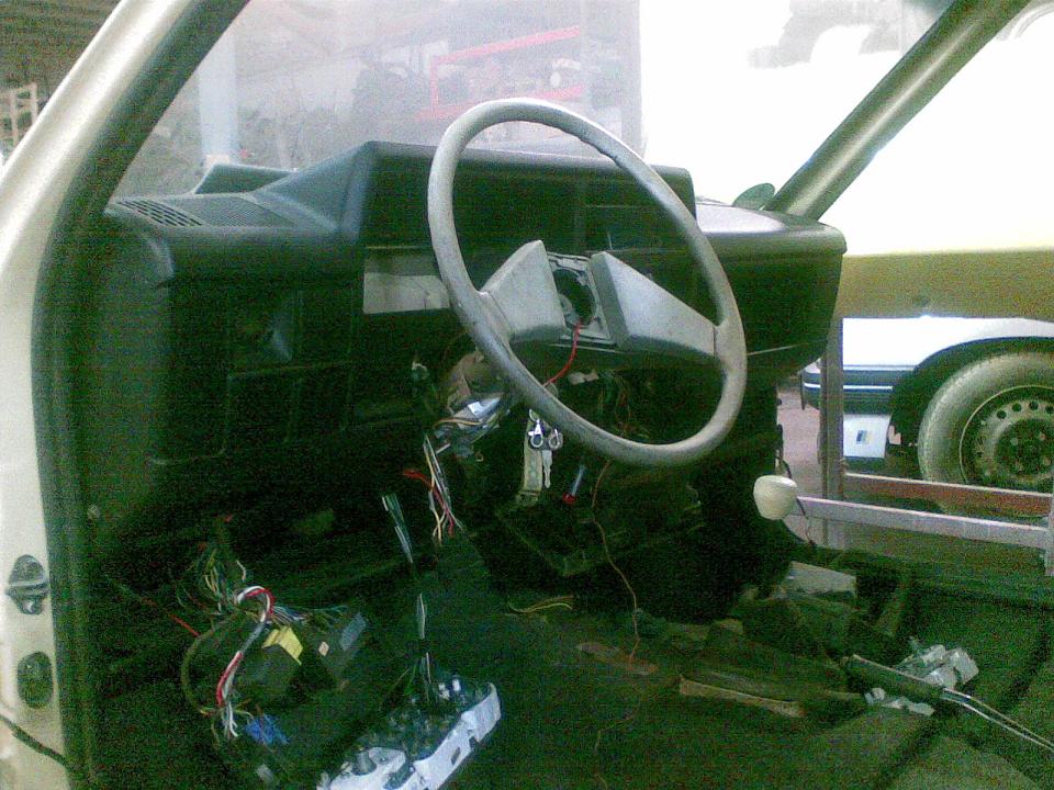 Der Innenraum ist auch soweit durch. Verbaut wurde ein 32er Holzlenkrad von Jamex, bei dem der Vorbesitzer die Speichen schon in beige lackiert hatte