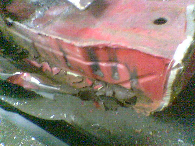 Jetzt gehts an die erste Seitenwand. Oh welch ein Graus darunter. Da hat mal jemand was versucht