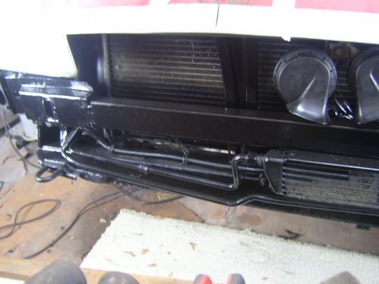 Motor ist Verkabelt,alle Schläuche drin.Strebe zwischen die Pralldämpfer zum Verstärken Verschweißt.MHV Angepasst und Verschweißt.Rechten Radlauf geht es jetzt auch an den Kragen.