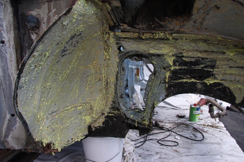 Momentan bin ich noch in den hinteren Radkästen zu Gange, erst dann wird dem Blech der Prozess gemacht. Und wie solls anders sein hab ich noch ein Loch gefunden...