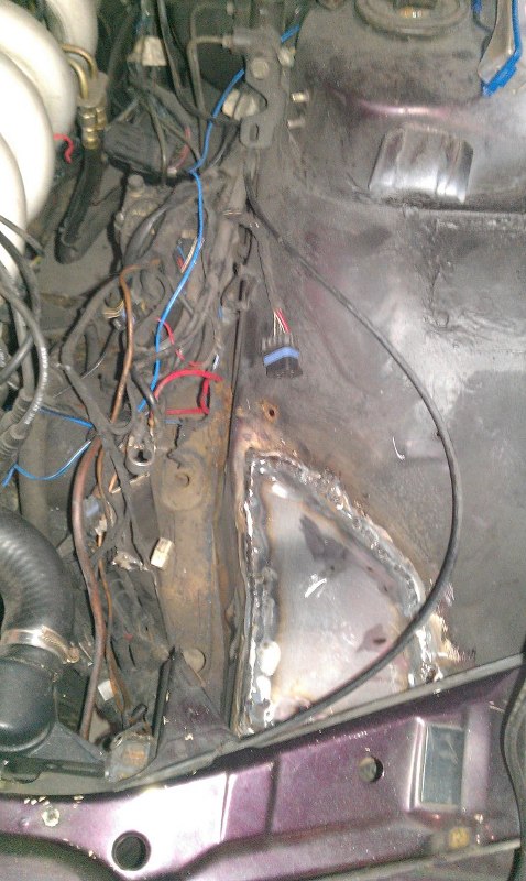 Radlauf auf der Beifahrerseite hab ich innen sowie außen ersetzt, und den Längsträger Fahrerseite repariert, und ein neues Batterieblech eingesetzt.