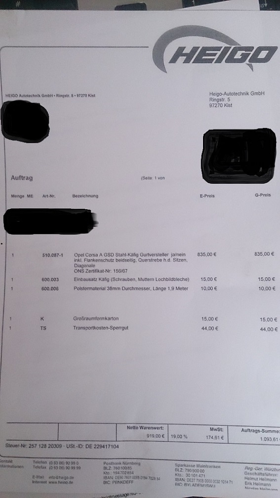 das Stimmt ne Probefahrt gibts deshalb erst im Frühjahr bis dahin rassel ich mit meiner 3 Zylinder B-Corsalette durch die Gegend :roll: aber jetzt kann ich dann endlich bald bei Heigo meinen Käfig bestellen und mich noch um die Karosserie kümmern :o