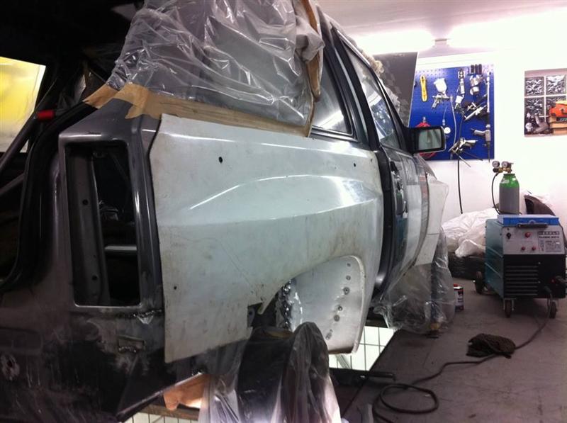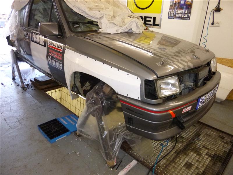 Dann noch die Verbreiterungen richtig angepasst und geklebt, dann gehts mir der Spachtelei los, da hab ich zum Glück unterstützung von einem Lackierer.