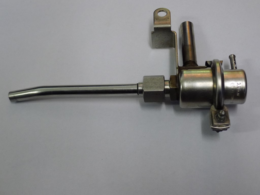 Der Motor braucht 3,8 bar Systemdruck. Außerdem hat er ein rücklauffreies System, also an der Einspritzleiste nur einen Eingang. Der Druckregler sitzt Original direkt an der Pumpe im Tank.