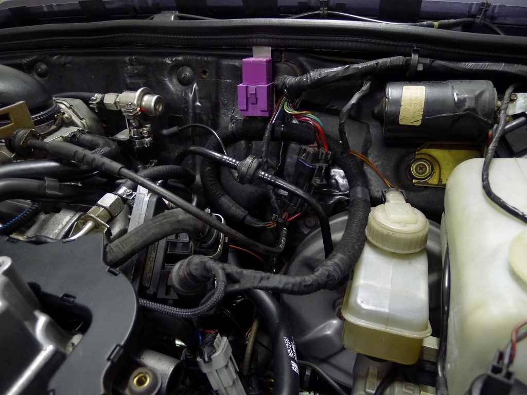 Ich suche mir also einen Platz im Motorraum, baue mir ein Halteblech, besorge ein 8-10-8 mm T-Stück und verschlauche alles. Zulauf, Rücklauf und Unterdruck. Praktischerweise war der Anschluss am BKV Rückschlagventil ohnehin frei. Den BKV Schlauch vom Vectra konnte man dank Heissluftföhn und etwas biegen übrigens auch übernehmen. Gaszug vom GSI passt 1:1.