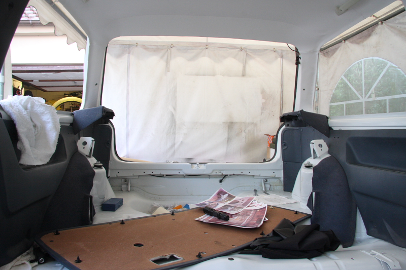 Zum Teil hatte es auch damit zu tun, dass einzelne Ersatz-Teile nicht da waren. Gerade was den Himmel angeht. Ohne den geht fast gar nix, da sämtliche Verkleidungsteile drübermontiert sind.