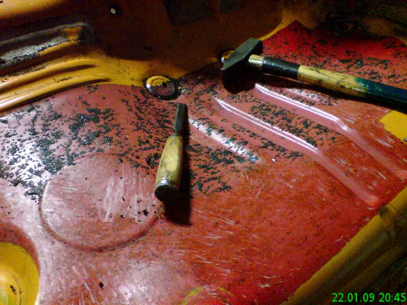 So hab heute mal angefangen die Dämmmatten aus Bitumen, die direkt auf die Bleche geklebt sind, zu entfernen.