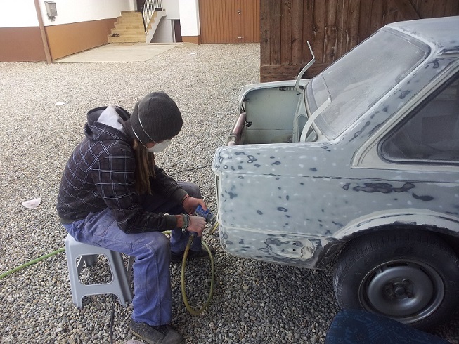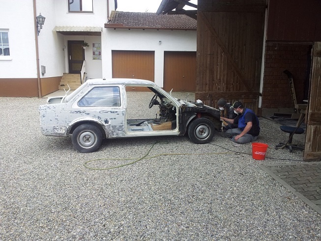 Hier muss ich nochmal sagen das ich echt Glücklich bin eine soo gute Basis zu haben, denn ich musste nichts schweißen oder übermäsig spachteln! Und nur daher und dank meiner 2 besten Freunde (die beide auch Autonarren sind) war diese schnelle Aufwertung meines kleinen Möglich!