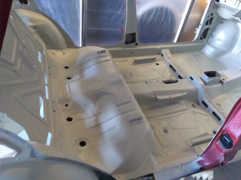 Schweißarbeiten waren soweit fertig und habe damit begonnen den Motorraum/Kofferraum und Innenraum zu grundieren.