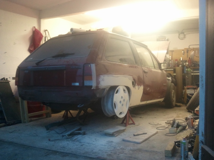 Dann hab ich noch keinen rechten Plan wie ich weitermache. Bin komischerweise von dem Plan abgekommen das Auto im Winter zu fahren, somit hat das Auto zurzeit keine Verwendung und muss nicht fertig werden bis zum Tag X. Wollte die Karosse nach den Karosseriearbeiten erstmal durchlacken und dann wieder in der Garage aufbocken. Was ich Motortechnisch mache weiß ich auch noch nicht so genau. Falls ich den Motor wieder ausbaue um was größeres einzubauen, in dem Zuge lacke ich dann den Motorraum noch aus. Das geht ja allemal in der Garage. Ein 2Liter 16V wäre was richtig geiles. Wenn dann mal richtig Dampf in der Hütte. Aber das ist noch absolute Zukunftsmusik.