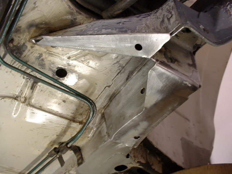 Die Rostkatastrophe im rechten Längsträger ist bekämpft, das rausgetrennte Stück Verstärkungsblech nachgebaut.