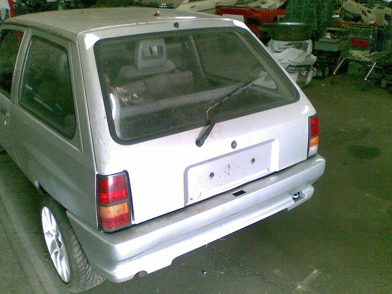 So wie es aussieht war da mal ein Paket von Irmscher dran. Davon sind aber nur die Stoßstangen vorn und hinten übrig geblieben. Die Kotflügel vorn haben an der Unterseite zur Tür hin Rost. Also vermute ich mal, daß da die Schweller von Irmscher dran waren. Auch an der Heckklappe sind die Löcher vom Spoiler.