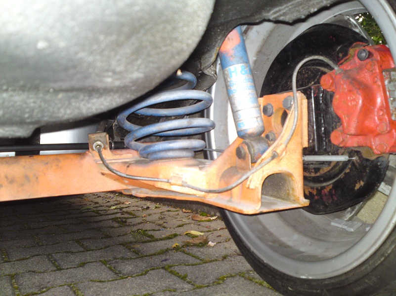 Aktuell, bin ich immernoch am Umbau vom Handbremsseil, deshalb ist er aufgebockt....
