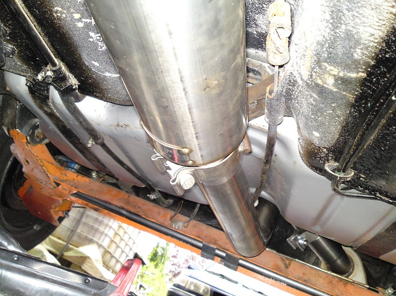 Auspuffanlage besteht nun aus dem originalen Fächerkrümmer über ein Flexrohr verbunden mit einem Euro 2 Kat(HJS) zu Mittel-und Endschalldämpfer von JettexFortex(Gruppe A) mit verlängertem Endrohr 70mm