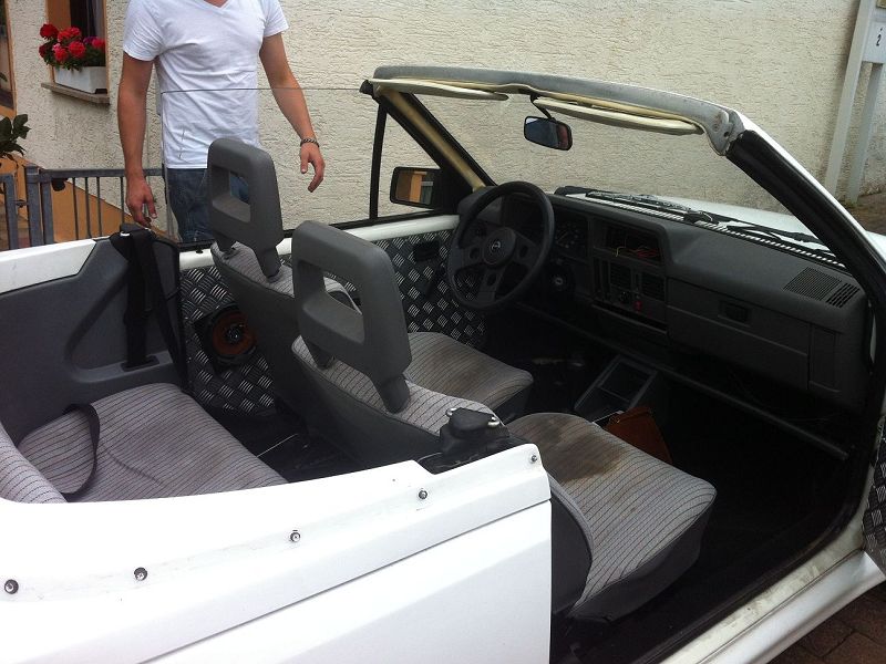 Ok, ich nehm das Ding, dachte ich mir und fing an zu verhandeln. Stehen geblieben sind wir bei 1200€, da dem Vorbesitzer noch das Verdeck gerissen ist. (Hab aber dank des Forums bereits ein neues gefunden)