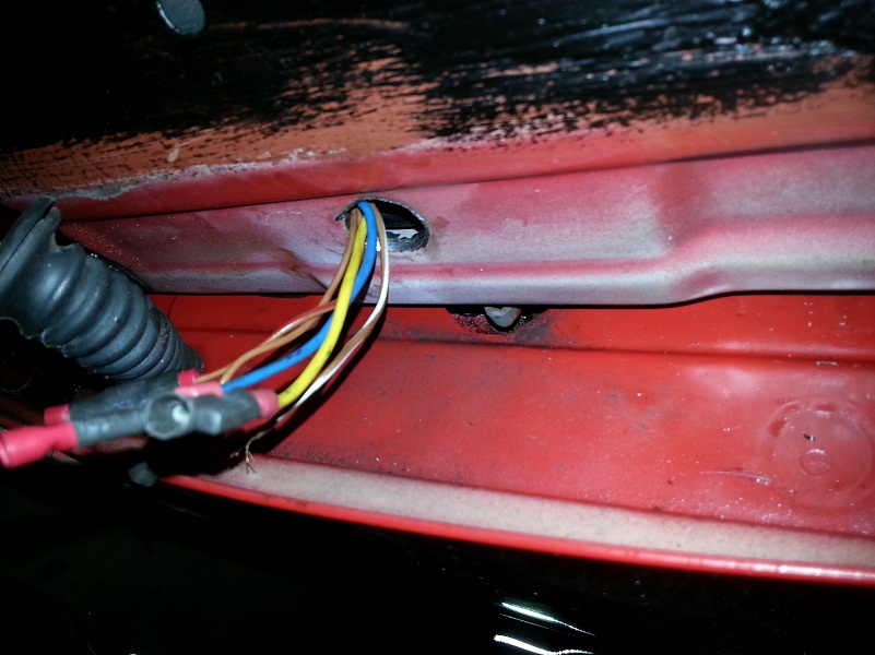 Kabeldurchführung für die elektr. Fensterheber und ZV (Kabel wurden verlötet nicht zusammengesteckt, das war vom Vorbesitzer):