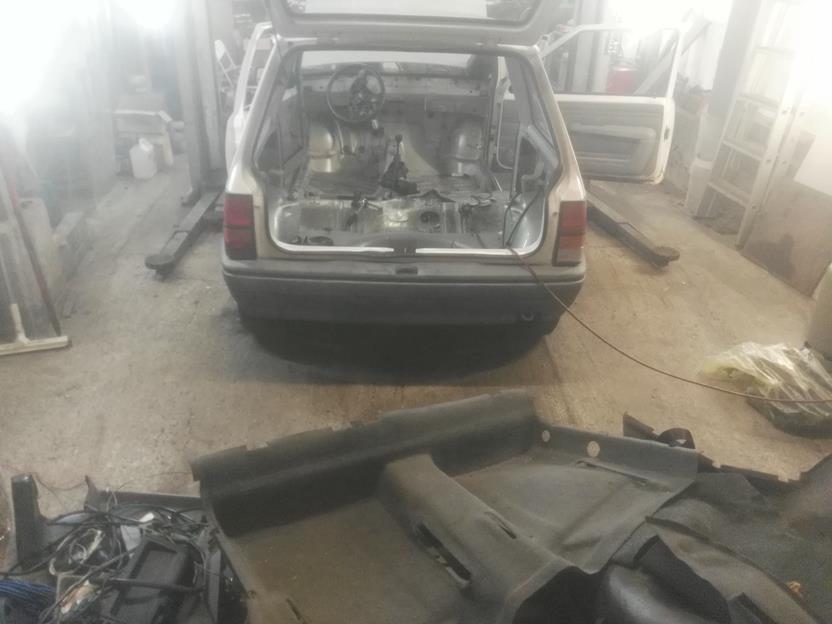 Das Dach war geil. Ich wollte nur nachsehen wo der Rost aus dem Riss herkommt und hab dann großzügig Spachtelmasse entfernen dürfen. Die Delle hab ich dann wieder nach außen gedengelt.