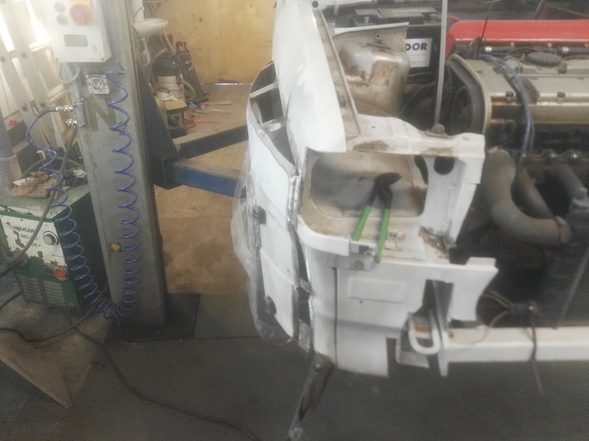 Leider bekomme ich den vorerst nirgends im Motorraum unter, das Teil ist 30 Cm hoch. So lange die Front noch drinnen ist hab ich keinen Platz.