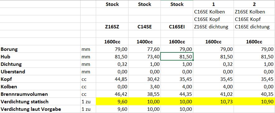 Daraufhin haben wir viele Kombinationen von Teilen durchgerechnet (Köpfe, Kolben, Dichtungen) und sind zur einige schöne Ergebnisse gekommen.