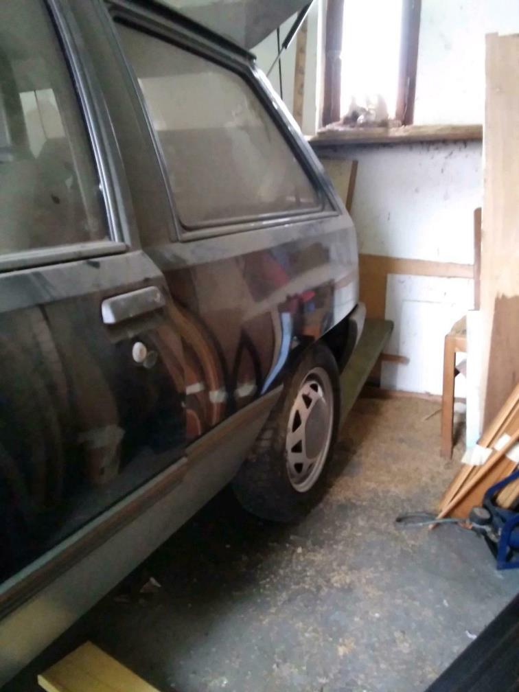 Also mit dem Anhänger nach Duisburg und in strömenden Regen das Auto nach 29 Jahren! Standzeit in einer Garage, aufgeladen, das Teil bezahlt und ohne genauer hinzuschauen wieder nach Hause gefahren.