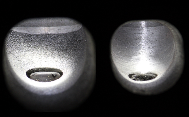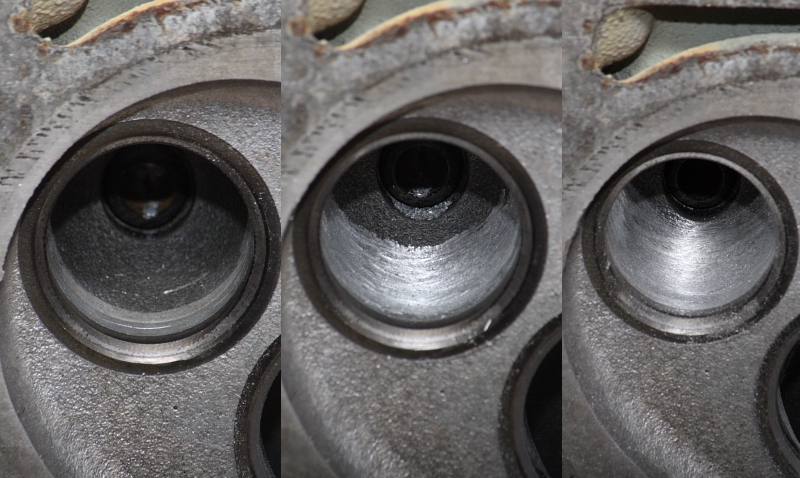 Der Auslasskanal in drei Schritten:<br />Original<br />gefräst<br />und geschliffen