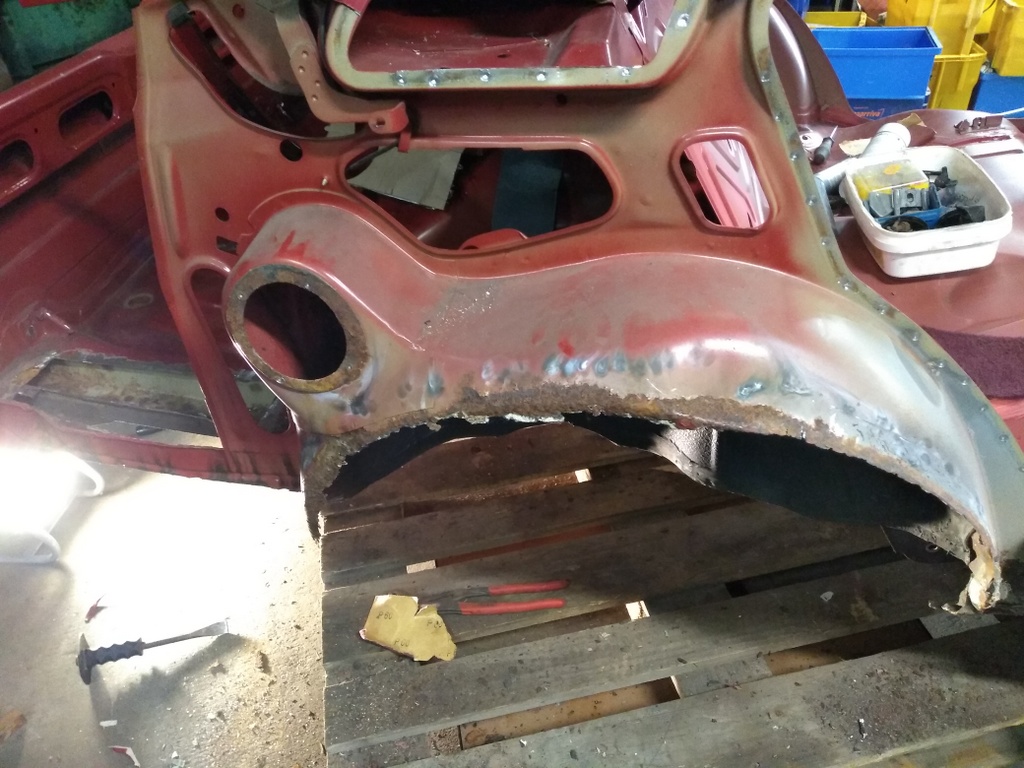 Da wurde der Rest von den Anbauteilen alles bis auf Rohkarosse demontiert.