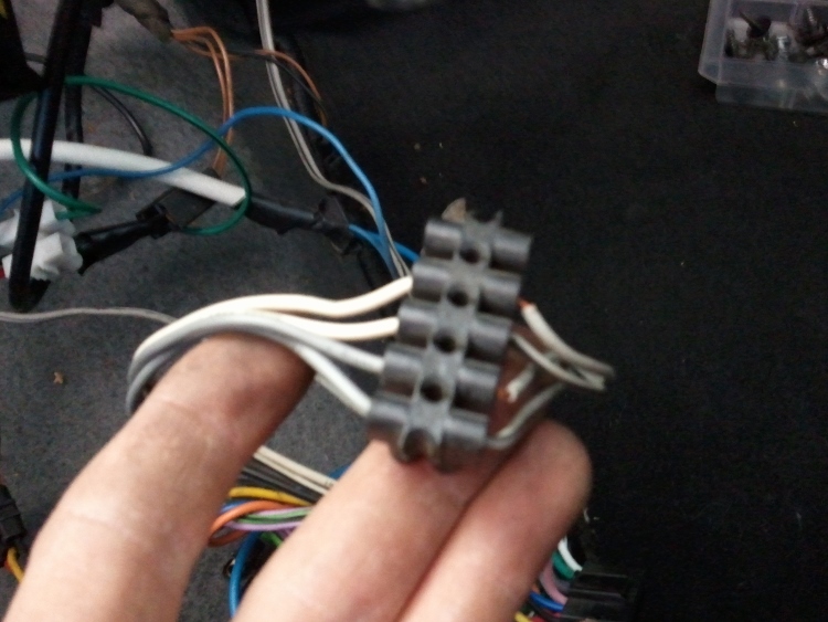 Erwin hatte ab Werk kein Radio... deswegen is die Antenne auch auf der falschen Seite. Höhepunkt der Verkabelung ist das ROTE Massekabel und das braune Dauerplus.... ein Wunder, dass der Kleine noch nicht abgefackelt ist... alles natürlich mit Kabelklemmen auf DIN-Stecker Verteilt...