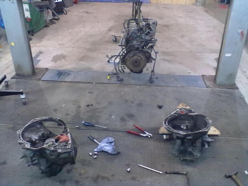 Na ja, wenigstens Getriebe klar gemacht und diverse Schrauben zusammengesucht. Morgen noch WaPu und Zanhnriemen, dann wieder mal warten